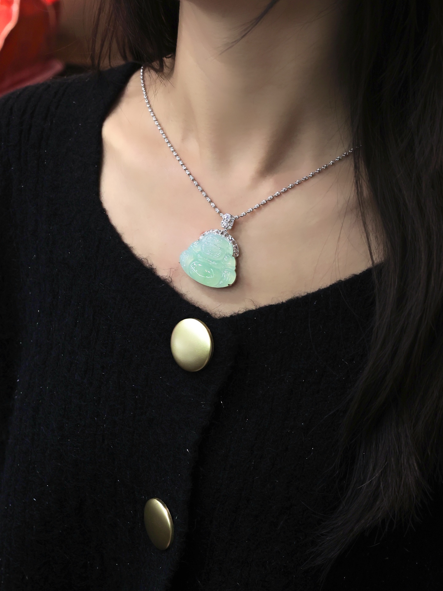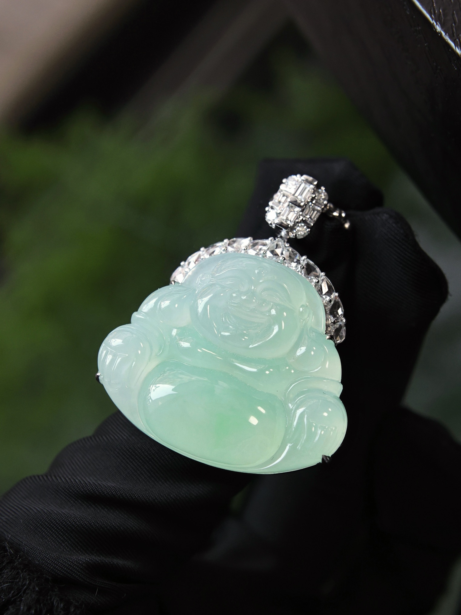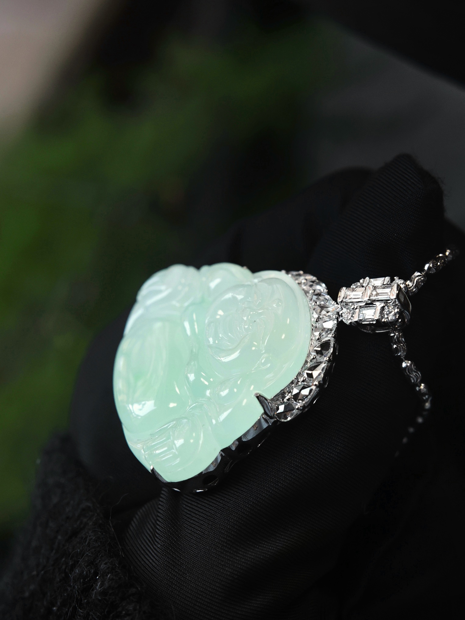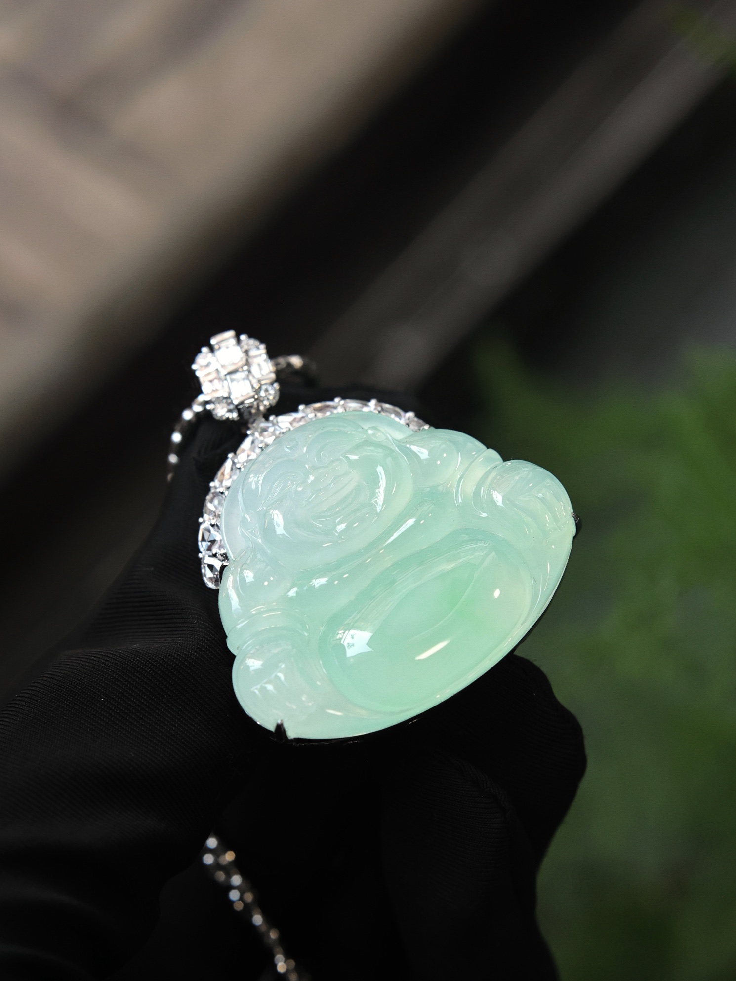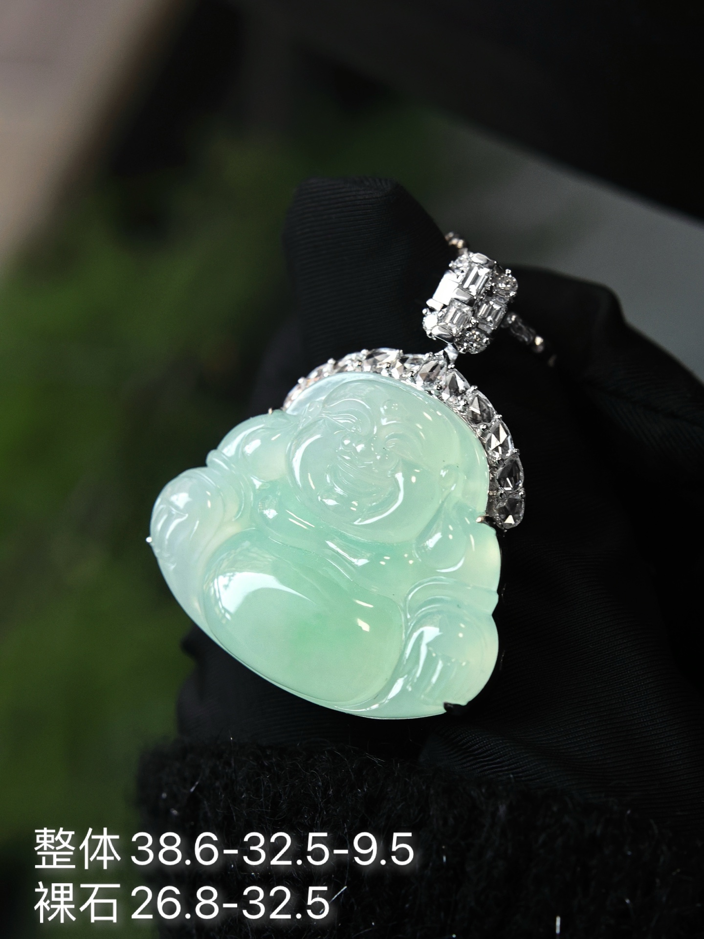 Jade pendant, 18k gold inlaid Buddha pendant, overall: 38.6-32.5-9.5, bare stone: 26.8-32.5