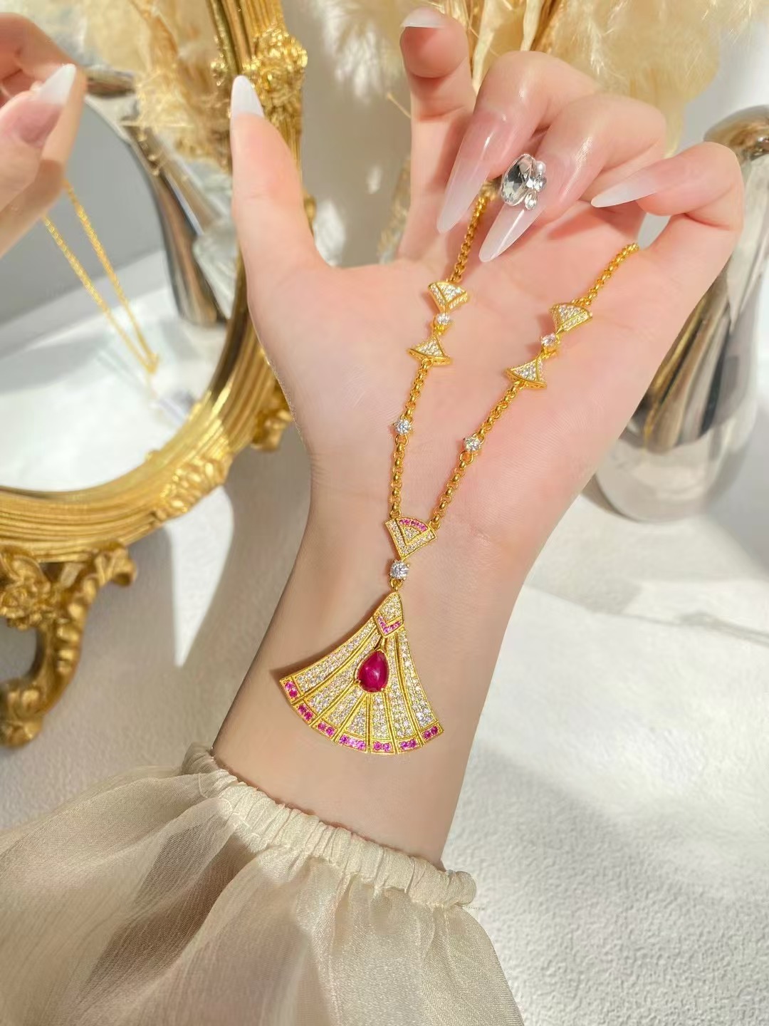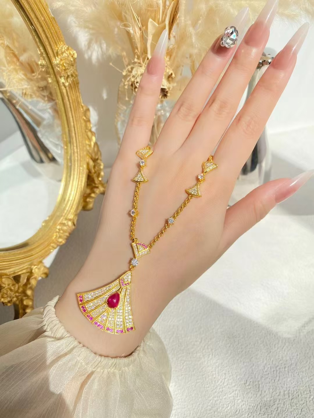 Pearl, ancient hollow fixed mouth bracelet rich and full of low temperature enamel synthetic red treasure natural freshwater pearl Moissanite jade art flower bracelet