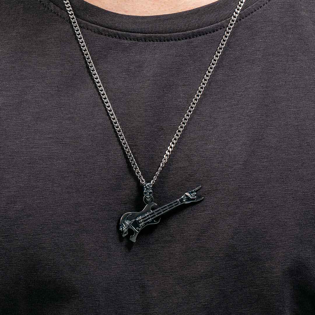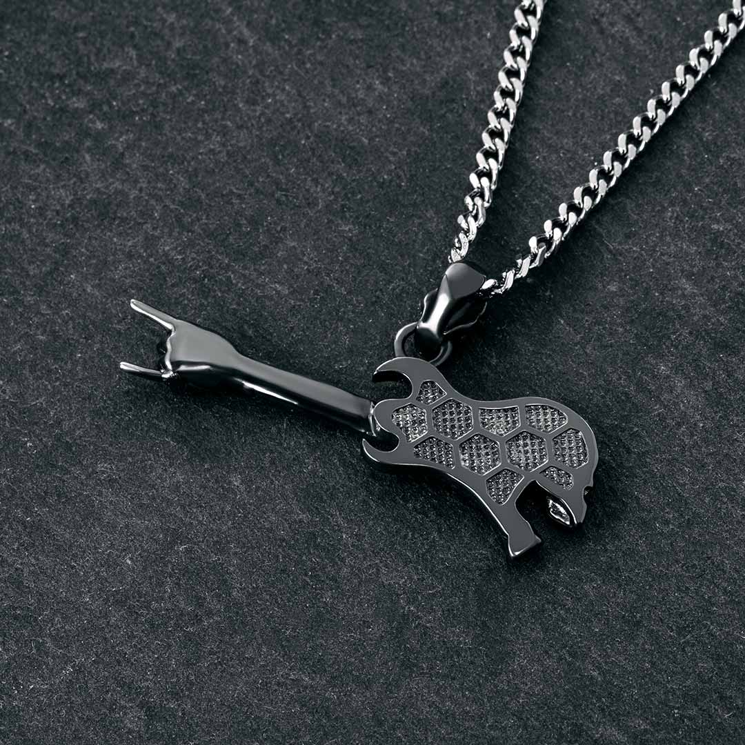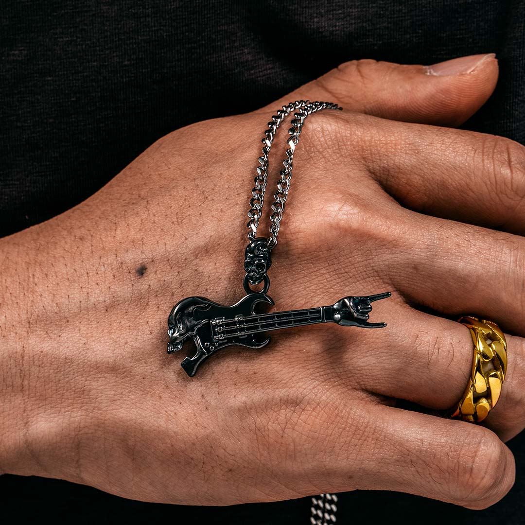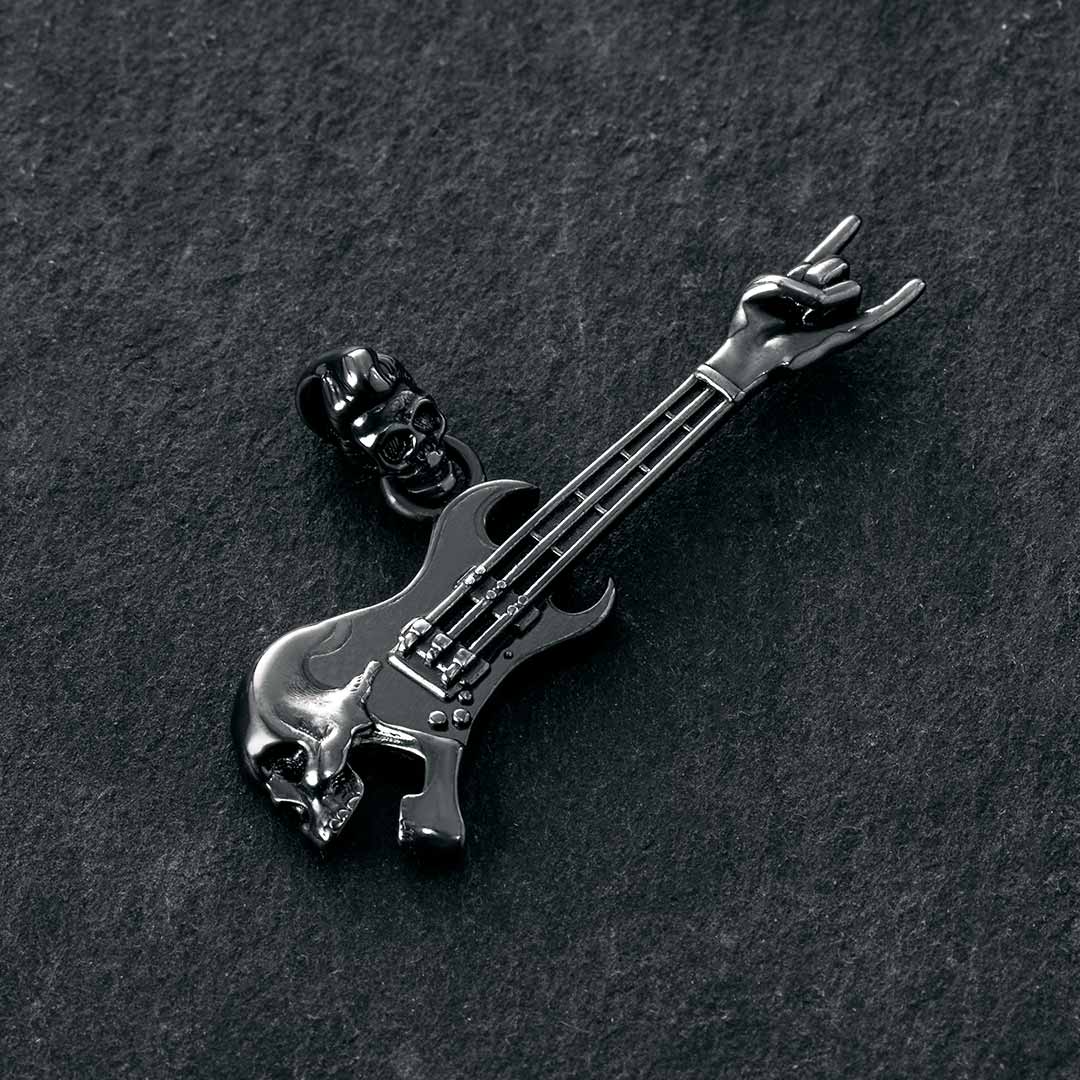 Helloice Rock Gestures Skeleton Guitar Pendant in Black Gold